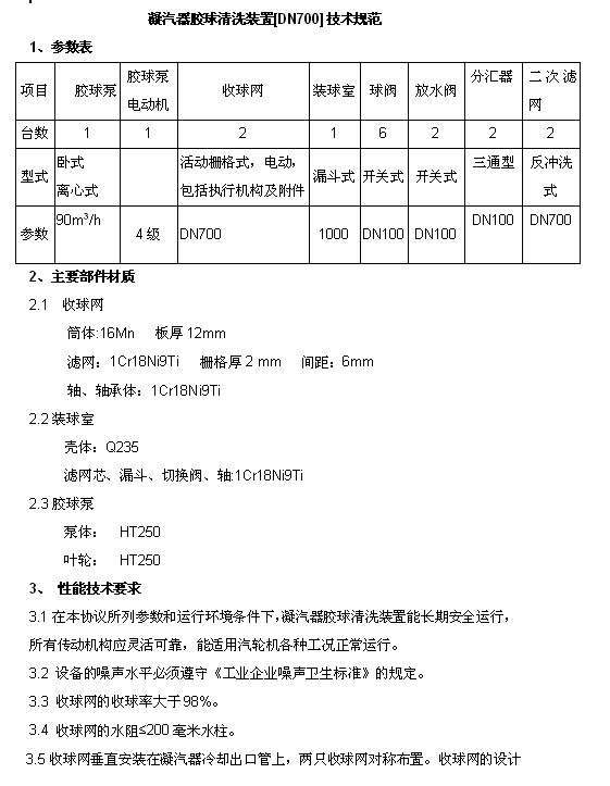 凝汽器膠球清洗[DN700]技術(shù)規(guī)范