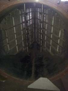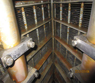 3、新型雙欄板式收球網(wǎng)人孔位置設計合理,能夠滿足檢修人員對收球網(wǎng)進行檢查及修理的要求。 4、新型雙欄板式收球網(wǎng)傳動系統(tǒng)活動自如、網(wǎng)板與筒體圍帶閉合嚴密,大水壓情況下網(wǎng)板不變形,膠球無回流現(xiàn)象。 5、新型雙欄板式收球網(wǎng)設計兩網(wǎng)板交匯點合理,網(wǎng)板水壓波動情況下無吸球現(xiàn)象,反洗徹底,無雜物掛留。