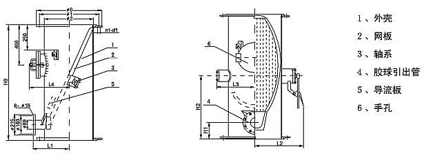 膠球清洗裝置優(yōu)點(diǎn): 1、結(jié)構(gòu)設(shè)計(jì)新穎合理, 2、操作方便(可人工操作、定時(shí)控制、壓差控制也可與DCS系統(tǒng)連接實(shí)現(xiàn)遠(yuǎn)程控制)。 3、膠球回收率高(≥98%)。 4、二次濾網(wǎng)過濾能力強(qiáng)。(有臥式或立式,手動(dòng)或電動(dòng)型式)。 膠球清洗裝置-收球網(wǎng) 收球網(wǎng)是膠球清洗系統(tǒng)的關(guān)鍵設(shè)備,它的功能是把膠球從冷卻水中分離出來,且保證不漏球、不卡球。收球網(wǎng)安裝在冷卻水出口管段上,從凝汽器流出夾帶膠球的水經(jīng)過收球網(wǎng)時(shí),球被回收并由引出管從收球網(wǎng)中引出。收球網(wǎng)的柵格網(wǎng)板可以轉(zhuǎn)動(dòng),在膠球循環(huán)運(yùn)動(dòng)時(shí)網(wǎng)板置于“收球”位置,在不投運(yùn)膠球清洗時(shí)網(wǎng)板置于“反沖洗”位置,此時(shí)網(wǎng)板上的雜物被水沖走,同時(shí)又減少網(wǎng)板的水阻。網(wǎng)板的運(yùn)轉(zhuǎn)定位由電動(dòng)執(zhí)行機(jī)構(gòu)保證(小型收球網(wǎng)為手動(dòng)操作)。  膠球清洗裝置-二次濾網(wǎng):  當(dāng)冷卻水夾雜著雜物通過系統(tǒng)時(shí),雜物被小孔濾網(wǎng)阻擋在濾網(wǎng)迎水面,冷卻水通過小孔被凈化后進(jìn)入凝汽器,由濾網(wǎng)中的反沖洗裝置及排污閥聯(lián)動(dòng)進(jìn)行反沖洗,水流反向流動(dòng),卡在進(jìn)水面上的雜物被水流反沖脫離網(wǎng)孔由排污閥引出。只要凈化濾網(wǎng)不停地工作,冷卻水進(jìn)入凝汽器就始終是清潔的,濾網(wǎng)的阻力也不會(huì)增加。 膠球清洗裝置-裝球室 裝球室是膠球清洗系統(tǒng)中用于加球、取球、存儲(chǔ)球及觀察球循環(huán)的裝置。根據(jù)存儲(chǔ)球容積的大小分為Ⅰ型和Ⅱ型,根據(jù)用戶使用要求,有電動(dòng)與手動(dòng)兩類?刂蒲b球室運(yùn)行狀態(tài)的切換閥置于“收球”位置時(shí),球被阻擋在裝球室內(nèi),冷卻水仍能通過,所有投入循環(huán)的膠球全部回收到裝球室中。 膠球清洗裝置-膠球泵 膠球清洗泵為本公司研制開發(fā)的系列產(chǎn)品,系單級(jí)、單吸懸臂式無堵塞離心泵。主要用于膠球清洗裝置中膠球輸送。HNSS型膠球清洗泵的特點(diǎn):效率高;可靠性好;抗堵性能良好,是替代SQ型膠球清洗泵的新產(chǎn)品。HNSS型膠球清洗泵可采用不銹鋼材質(zhì)和配置機(jī)械密封結(jié)構(gòu)形成,以滿足不同的使用場合。 膠球清洗裝置-分匯器 分匯器是一個(gè)三通結(jié)構(gòu)閥。通過其中導(dǎo)向板的切換可使膠球進(jìn)入需要清洗的一側(cè)凝汽器中。也可作為收球網(wǎng)膠球引出管的匯合和接球管的分流三通管使用。 |