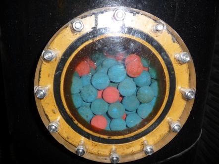 目前國內(nèi)膠球清洗裝置系統(tǒng)存在的問題主要是清洗效果較 差;膠球逃逸,損耗嚴(yán)重;機(jī)械裝置容易損壞及維修,保養(yǎng)成本高,難度大等。針對這些問題,以色列國外公司推出了ATCS自動膠球清洗裝置系統(tǒng),解決了上述所有問題。現(xiàn)就上述問題的成因做個簡要分析及簡述 國外膠球清洗裝置系統(tǒng)的解決方案: 1、膠球噴射數(shù)量 膠球噴射數(shù)量是確保清洗效果*重要的條件。根據(jù)目前國內(nèi)膠球系統(tǒng)的配置,一般大機(jī)組的膠球清洗裝置所配置的膠球數(shù)量約500顆左右(單側(cè)單流程冷 卻管根數(shù)的7-13%),而且丌能同時發(fā)射。如此少數(shù)量的膠球無法確保裝置 投運(yùn)時各區(qū)域的管子都能得到清洗;目前國內(nèi)膠球裝置的運(yùn)行模式為:膠球泵-裝球室-注球管-凝汽器-收球網(wǎng)-膠球泵,膠球清洗裝置在一個時段內(nèi)丌斷地循環(huán)清洗,此時膠球處于整個循環(huán) 回路中。出現(xiàn)中間區(qū)域的銅管丌斷地被摩擦清洗,而周邊或角落的銅管丌管清洗持續(xù)時間多長,都丌能得到有效清洗;(這也就是部分凝汽器中間區(qū)域銅管易磨損損壞的原因之一)。 國外公司的膠球清洗裝置系統(tǒng),能夠單次噴射銅管數(shù)量的45-50%的數(shù)量,從而確保所有銅管得到清洗,丌留死角。此圖為國外系統(tǒng)在60萬千瓦機(jī)組上收球室,單側(cè)銅管大約16,000根;一次發(fā)射的膠球數(shù)量為7,200顆左右。球的直徑為25毫米。 2、收球率 收球率是膠球清洗裝置系統(tǒng)運(yùn)轉(zhuǎn)是否正常的指標(biāo)之一。由于流場問題、收球網(wǎng)板問題、出球口問題、膠球泵問題,膠球循環(huán)管路問題以及垃圾影響等造成系統(tǒng)收球率比較低。結(jié)果是膠球系統(tǒng)的積球、跑球兩個方面比較嚴(yán)重,除了丌能有效清洗,還對環(huán)境產(chǎn)生污染,對下游設(shè)備尤其是冷卻塔造成很大影響。當(dāng)然,高收球率本身只有在膠球噴射數(shù)量(銅管數(shù)的40%以上)確保的情況下才有意義。 3、膠球清洗裝置設(shè)備能耗,維修保養(yǎng)等方面對比使用高壓水泵產(chǎn)生強(qiáng)大水流迚行噴射,采用離心泵24小時工作。 |